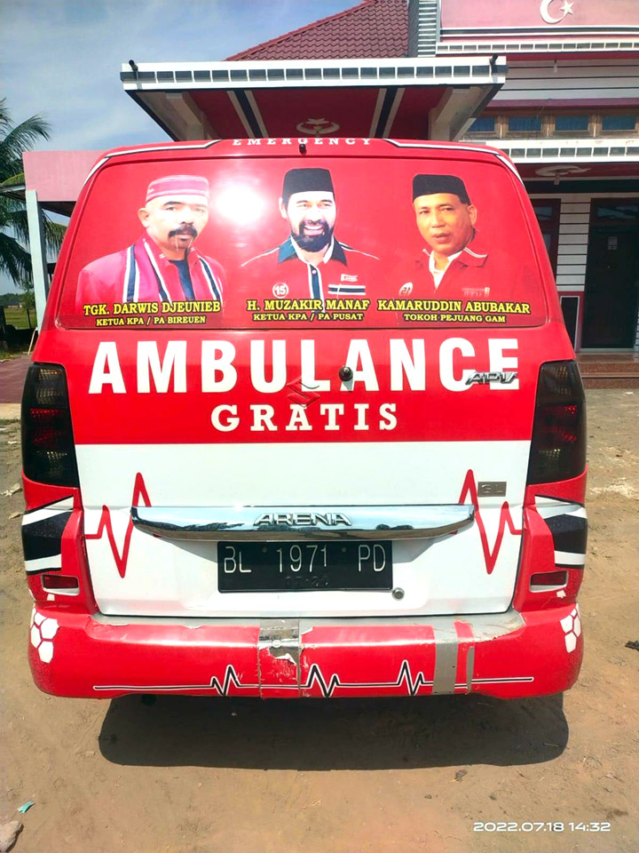 Satu Unit mobil ambulance milik Partai Aceh/KPA ini dapat dipergunakan masyarakat secara bersama untuk berbagai macam kebutuhan. Seperti  mengantar-menjemput pasien, baik dalam wilayah maupun di luar daerah Kabupaten Bireuen.