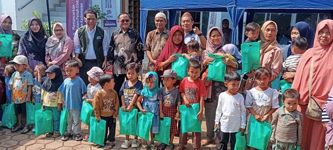 Kegiatan bakti sosial dan tasyakuran ini melibatkan masyarakat sekitar dengan diramaikan ibu-ibu yang membawa anak-anaknya.