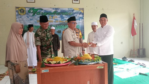 Acara ditandai dengan pemotongan tumpeng dan santunan anak yatim yang ada di sekitar lingkungan Kecamatan Sukamakmur.