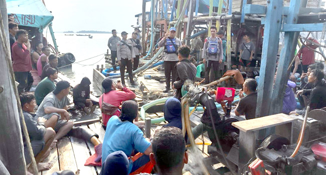Sesampainya di lokasi, personel gabungan langsung menghentikan aktivitas dan mengimbau agar menggeserkan ponton-ponton TI Rajuk Tower tersebut keluar dari wilayah perairan Batu Hitam yang merupakan wilayah tangkap nelayan setempat.
