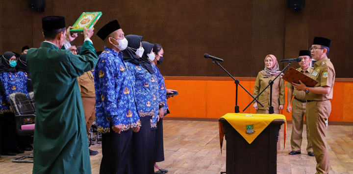 BEKASI, INDONEWS – Pj. Bupati Bekasi, Dani Ramdan mengambil sumpah janji 164 Pegawai Pemerintah dengan Perjanjian Kerja (P3K) Jabatan Fungsional Tenaga Kesehatan di lingkungan Pemkab Bekasi tahun 2022, di aula KH. Noer Alie kantor Bupati Bekasi, Senin (3/4/2023).