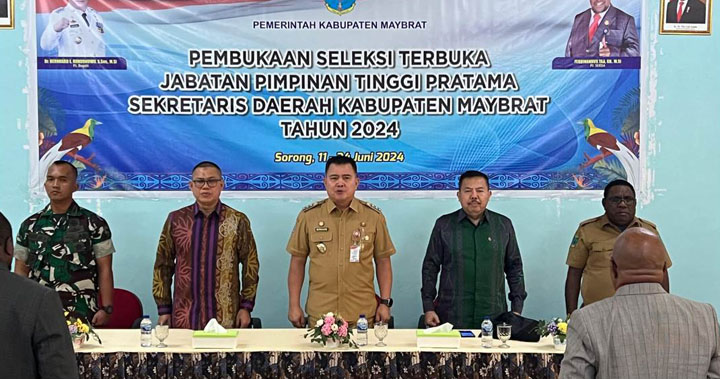SORONG, INDONEWS | Pj Bupati Maybrat, Dr. Bernhard Eduard Rondonuwu S.Sos M.Si, secara resmi membuka seleksi terbuka jabatan pimpinan tinggi pratama sekretaris daerah Kabupaten Maybrat tahun 2024, di Sorong, Senin 24 Juni 2024.
