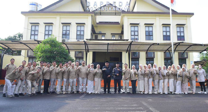SUKABUMI, INDONEWS | Penjabat (Pj) Wali Kota Sukabumi, Kusmana Hartadji menjadi pembina apel pagi di lingkup Badan Perencanaan Pembangunan Daerah (Bappeda) Kota Sukabumi, Selasa (2/7).