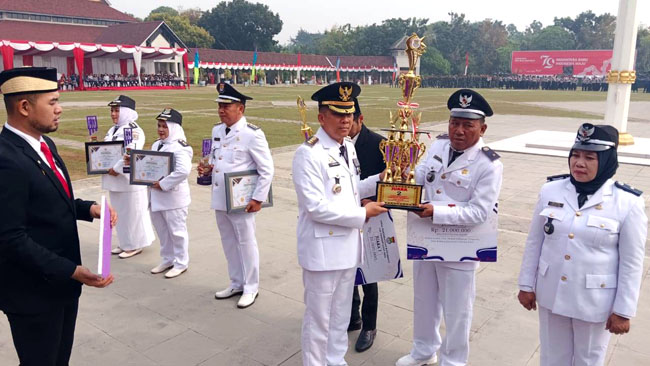 Selanjutnya Andi Ony memberikan hadiah kepada desa terbaik, juara pertama Desa Cirarap Kecamatan Legok medapatkan uang pembinaan sebesar Rp. 26 juta.