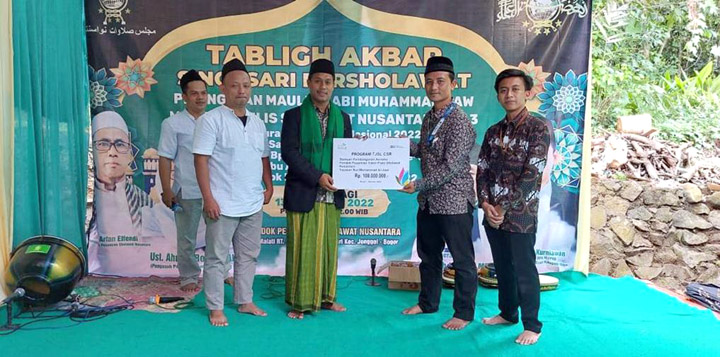 Penyerahan dilakukan oleh Yopi Setiawan, Supervisor Teknik ULP Jonggol, selaku perwakilan dari PLN dalam acara Tabligh Akbar yang dilaksanakan oleh Ponpes Shalawat Nusantara.