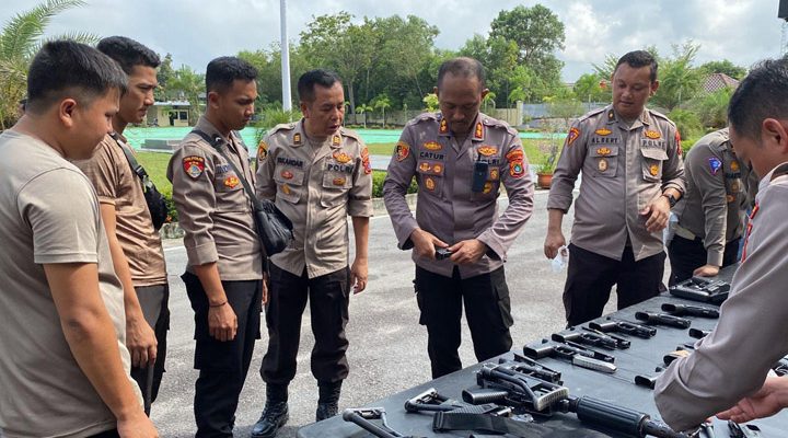 BANGKA BARAT, INDONEWS – Polres Bangka Barat melaksanakan pemeriksaan dan pengecekan berkala senjata api dinas yang dipegang oleh tiap personel Polres, Selasa (6/9/2022).
