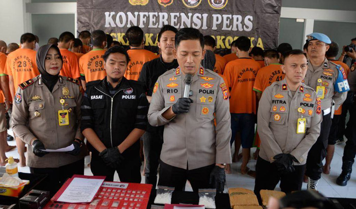 “Satuan Narkoba Polres Bogor berhasil mengamankan sebanyak 32 orang tersangka, berikut dengan total barang bukti sabu seberat 0,6 kilogram, ganja seberat 6,03 kilogram, tembakau sintetis 74,2 gram dan sediaan farmasi sebanyak 315 butir,” terangnya, kepada wartawan, Kamis (20/7/2023).