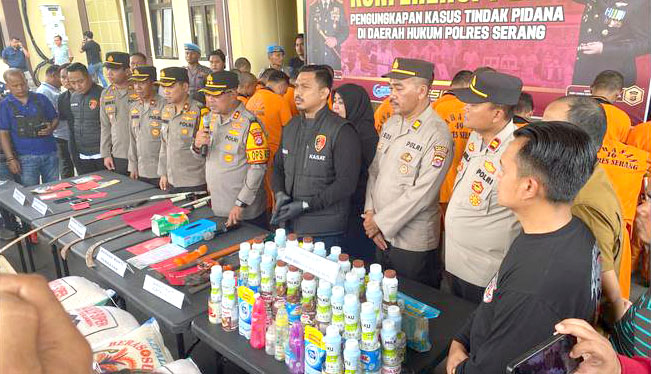 “Dari 16 pelaku yang ditangkap 7 diantaranya terpaksa dilakukan tindakan tegas karena membahayakan petugas, 3 diantaranya merupakan spesialis pembobol toko kelontongan dan kios beras yang beroperasi di Provinsi Banten,” terang Kapolres didampingi Wakapolres Kompol Ali Rahman CP Kasatreskim AKP Andi Kurniady ES dan Kasihumas AKP Dedi Jumhaedi.