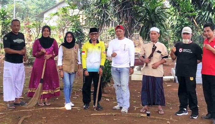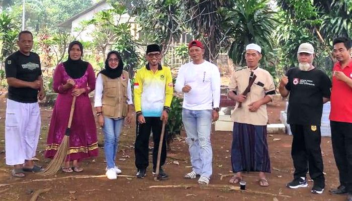 BOGOR, INDONEWS | Pimpinan Pondok Pesantren Darul Fikri KH. Pepen Ruspendi bersama Sekretaris Desa Leuwinutug, Kecamatan Citeureup, Boyan menginisiasi kerja bakti bersih-bersih di tempat pemakaman umum (TPU).