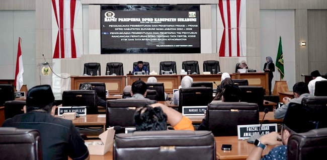 - Pengumuman dan Pembentukan Fraksi-Fraksi DPRD Kabupaten Sukabumi Masa Jabatan 2024-2029;