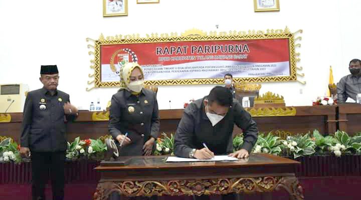 TUBABA, INDONEWS – Pengesahan Rancangan Peraturan Daerah (Raperda) tentang Pertanggungjawaban Pelaksanaan Anggaran Pendapatan dan Belanja Daerah (APBD) Tahun Anggaran 2021 Kabupaten Tulang Bawang Barat (Tubaba). Pengesahan tersebut dilaksanakan dalam Rapat Paripurna DPRD Tubaba, di Ruang Paripurna DPRD, Kamis (30/06).