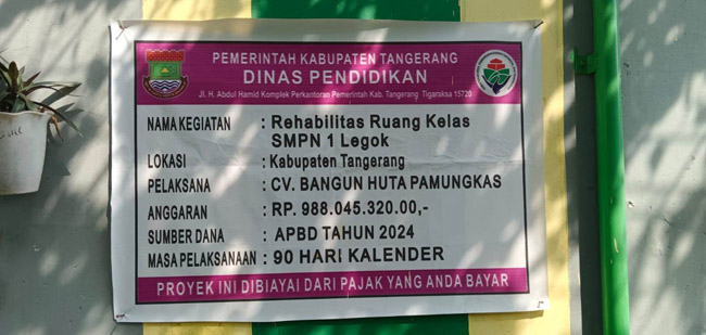 masyarakat setempat juga menyoal kegiatan rehabilitasi ruang kelas SMPN 1 Legok dengan anggaran cukup besar, Rp. 988.045.320.00. Warga memeprtanyakan, mengapa pengecatan dinding tidak diselesaikan.