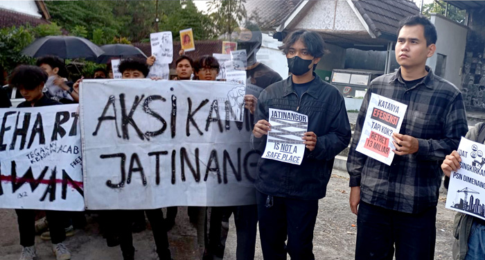“Tapi di sisi lain, saat ini di kampus IPDN sedang berlangsung retret kepala daerah. Lihat poster yang kita bawa, tulisannya “Katanya efisiensi, tapi kok retret 13 miliar”. Tulisan itu menjadi pertanyaan, apakah manfaat retret ini benar-benar untuk masyarakat atau hanya menyamakan persepsi untuk korupsi?” ujar Zaki, seraya disambut riuh massa lainnya.