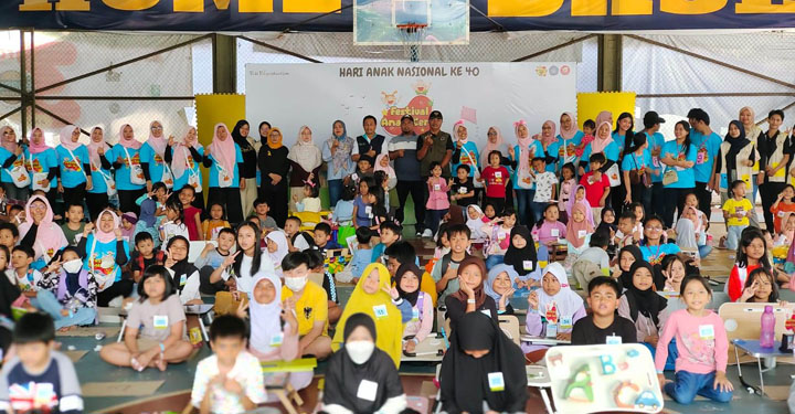 BEKASI, INDONEWS | Dalam rangka Hari Anak Nasional ke 40, TP PKK Jatibening Baru bekerja sama dengan BuBi Production dan berkolaborasi dengan Paguyuban Pendongeng Indonesia dan Traditional Games Return (TGR) mengadakan Festival Anak Ceria.