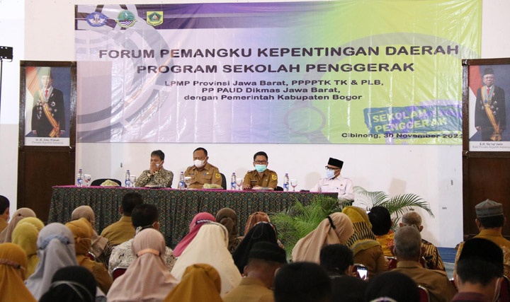 Program sekolah penggerak adalah katalis untuk mewujudkan visi pendidikan Indonesia, dengan program yang berfokus pada pengembangan hasil belajar siswa secara holistic. hal ini dilaksanakan melalui program intrakurikuler, projek penguatan pelajar pancasila, dan ekstrakurikuler.diharapkan adanya peningkatan dua sampai tiga kali lipat loncatan kemajuan hasil belajar dalam literasi, numerasi, dan karakter serta mewujudkan profil pelajar pancasila, yaitu beriman dan bertakwa kepada Tuhan Yang Maha ESA, Berkebhinekaan global, bergotong royong, kreatif, bernalar kritis, dan mandiri. Dalam realisasi implementasi kurikulum ini, sekolah penggerak memberikan pengaruh yang signifikan dalam sosialisasi dan pendampingan implementasi kepada sekolah bukan penggerak untuk kesuksesan implentasi kurikulum merdeka di kab. bogor. Saat ini kab bogor telah menjadi kabupaten model pelaksaaan kurikulum merdeka dengan memiliki sekolah penggerak sebanyak: