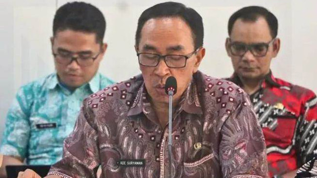 SUKABUMI, INDONEWS | Sekretaris Daerah Kabupaten Sukabumi H. Ade Suryaman SH., MM., mengikuti Rapat Kerja Gabungan Badan Anggaran DPRD Kabupaten Sukabumi dengan Tim TAPD Kabupaten Sukabumi di Ruang Rapat Badan Musyawarah DPRD, Palabuhanratu, Kamis (11/9/2025).