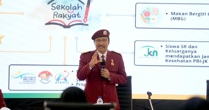 “Yang saya gunakan ini adalah contoh. Ini nanti adalah seragam almamaternya Sekolah Rakyat,” kata Gus Ipul saat memberi pembekalan Kepala Sekolah dan Guru Sekolah Rakyat di Pusat Pendidikan, Pelatihan dan Pengembangan Profesi (Pusdiklatbangprof) Kemensos RI, Cilandak, Jakarta Selatan, Selasa (19/8/2025), sebagaimana dikutip dari laman kemensos.go.id.