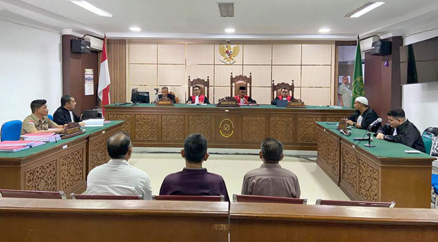 Sidang tersebut dipimpin oleh Ketua Majelis Hakim H. Hamzah Sulaiman, S.H, H. Harmi Jaya, S.H., dan R. Dedi Harryanto, S.H.,M.Hum masing-masing selaku Hakim Anggota.