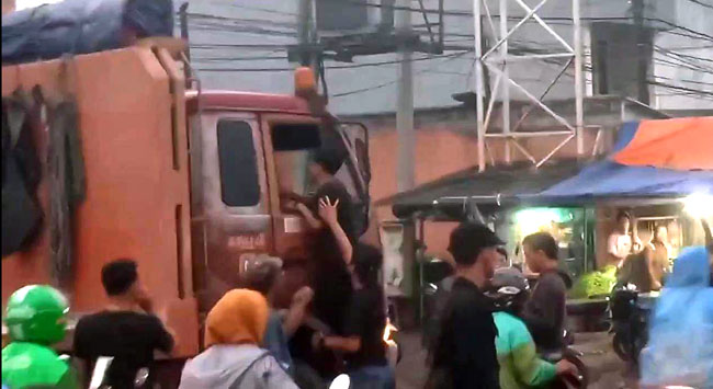 Namun karena tidak bisa mengerem mendadak lantaran khawatir terjadi laka lantas dibelakang mobil, truk tak bisa berhenti dan oknum pak ogah mengendor pintu mobil serta memukul. Karena takut, Agus pun tancap gas.