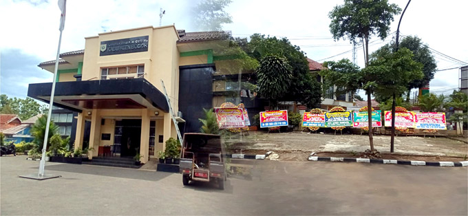 BOGOR, INDONEWS – Sejumlah karangan bunga bertebaran di kantor Kecamatan Ciseeng, Kabupaten Bogor, Jawa Barat.