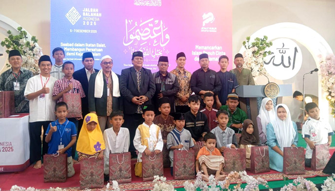 BEKASI, INDONEWS – Jemaat Muslim Ahmadiyah Indonesia (JAI) mengadakan rutinitas tahunan Jalsah Salanah, di Masjid Mubarak, Jalan Raya Mangun Jaya, Kecamatan Tambun Selatan, Kabupaten Bekasi, Minggu (7/12/2025).