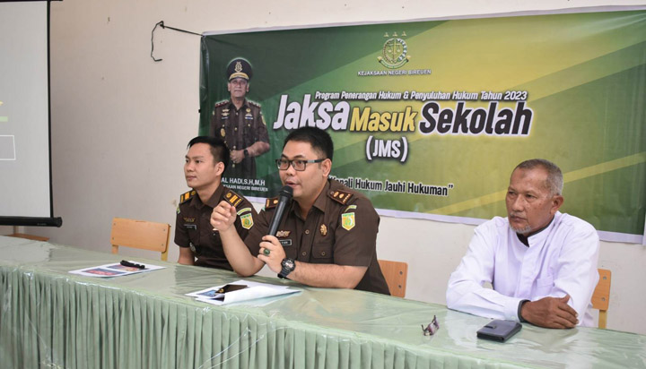 Jaksa Masuk Sekolah ini dipimpin langsung Kasi Intelijen Kejaksaan Negeri Bireuen Abdi Fikri, S.H.,M.H., didampingi Kasubsi A. Dona Popou Saragih, S.H dan Kepala SMAN 1 Jeumpa Dra. Rosnidar, M.M serta perwakilan dari Cabdin Drs. Jamaluddin, M.S.i Kabupaten Bireuen.