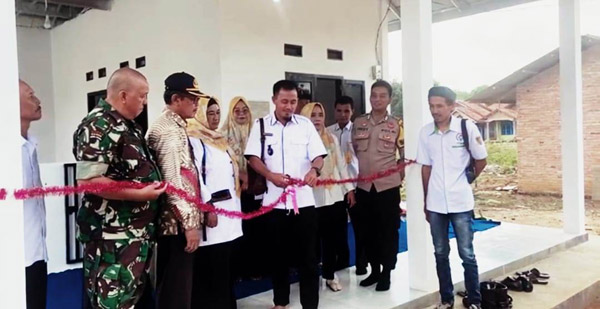 Serah terima hasil pembangunan fisik ini ditandai dengan pemotongan pita oleh Marta Gunawan.