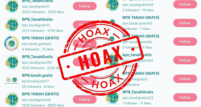 JAKARTA, INDONEWS | Belakangan ini, beredar informasi di platform TikTok mengenai akun yang menyebarluaskan hoaks “BPN Tanah Gratis”.