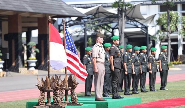 Kedatangan Danjen USARPAC tersebut disambut dengan upacara militer serta pemeriksaaan pasukan, dan dilanjutkan dengan Courtesy Call. Adapun tujuan dari kunjungan kehormatan ini adalah untuk meningkatkan kerja sama militer antara Indonesia dan Amerika Serikat, khususnya dalam rangka menjaga stabilitas dan keamanan di kawasan Asia Pasifik.